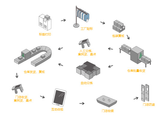 服飾零售業供應鏈和門店管理解決方案,是目前及未來市場上最強大的單品級(Item level)RFID應用解決方案。該方案針對服飾品牌商與零售商的業務流程而開發,采用尖端的物聯網技術和大數據架構,是一個端到端(E2E)的單品級供應鏈與門店管理解決方案,具有出色的可擴容性、整合性和可升級性,簡化RFID零售應用部署,并實現最大化的投資回報(ROI);同時可以根據用戶需求發展不斷迭代,保持產品的先進性與適用性。